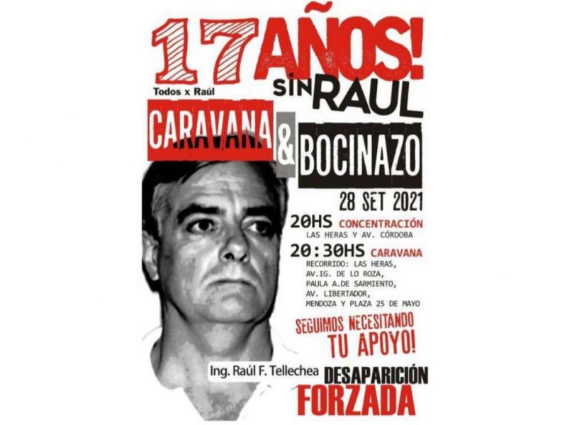 El rector de la Universidad Nacional de San Juan, Ing. Tadeo Berenguer y la vicerrectora Dra. Analía Ponce y autoridades universitarias adhieren e invitan a la comunidad universitaria a participar de la caravana y bocinazo, convocada para el Martes, 28 de Septiembre, a las 20 horas en Av. Córdoba y Las Heras, con motivo del 17 aniversario de la desaparición forzada del Ingeniero Raúl Tellechea y el irrenunciable reclamo de justicia.