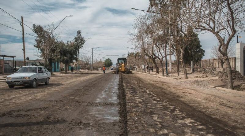 Comenzaron las tareas de pavimentación de la Avenida de Los Ríos, Departamento Caucete.