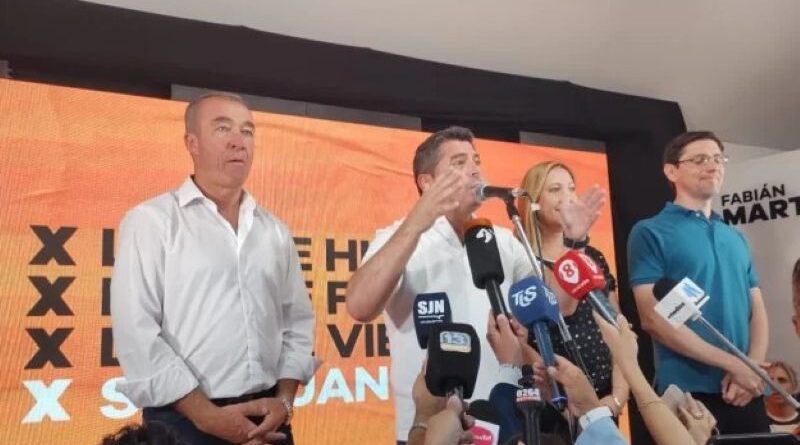 En el búnker del Frente Por San Juan el gobernador Dr. Marcelo Orrego y los candidatos Dr. Fabián Martín, la