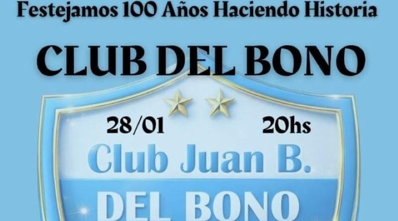 Leer másEl Miércoles, 28 de Enero de 2026, a las 20 hs.; el Club Del Bono cumple 100 años de existencia,