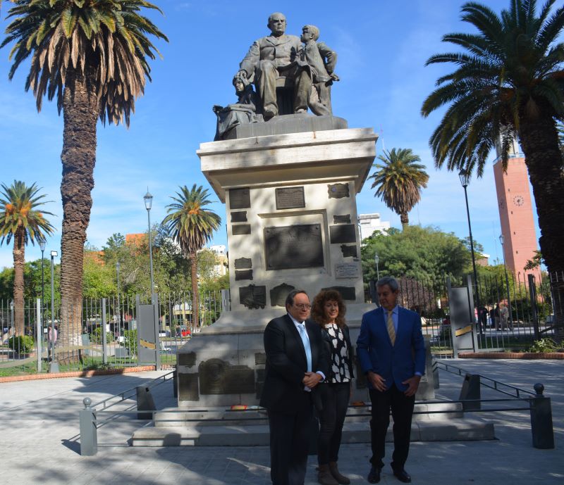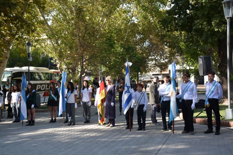 Luego, invitaron a depositar una ofrenda de libros frente al monumento al Gran Maestro de América Domingo Faustino Sarmiento, al vicegobernador CPN Roberto Gattoni, al presidente de la Sociedad Israelita, Dr. Leonardo Siere y a la Ing. Graciela Kalejman.