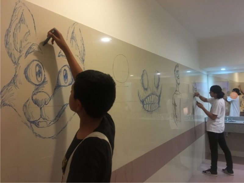 A lo largo de la noche, se desplegarán múltiples propuestas artísticas en torno al lenguaje del dibujo, la pintura de gran formato y el muralismo, dando lugar a un ambiente que estimula la creación artística y el intercambio.