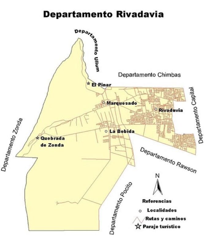 El Departamento Rivadavia limita con los Departamentos Capital, Ullum, Chimbas, Zonda, Pocito y Rawson, Provincia de San Juan.