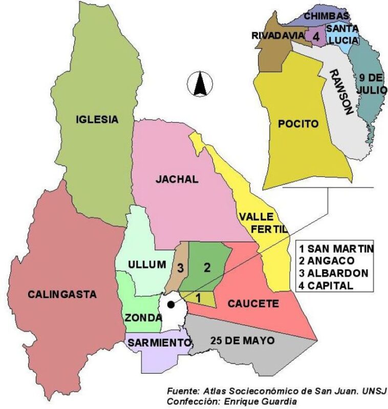 Provincia de San Juan con la división de los 19 Departamentos