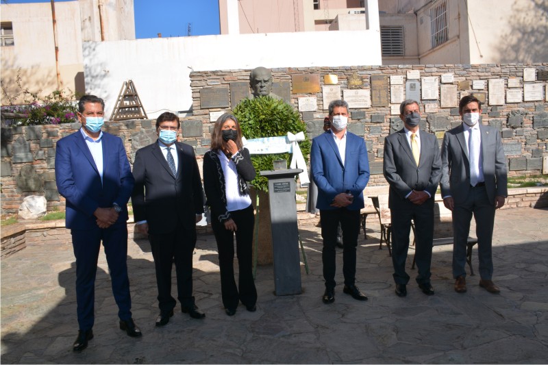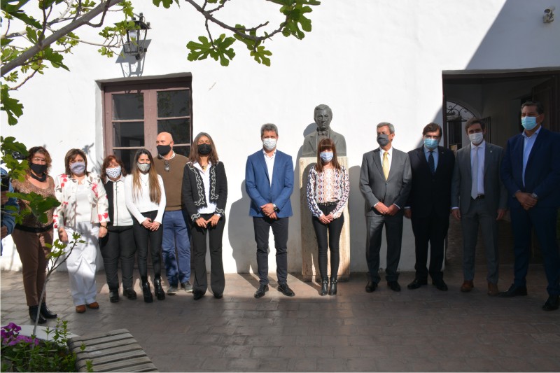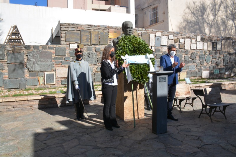 Posteriormente, las autoridades se trasladaron al patio de la casa natal de Sarmiento para colocar una ofrenda de laureles frente al busto del gran maestro de América para luego realizar un minuto de silencia en honor a Domingo Faustino Sarmiento.