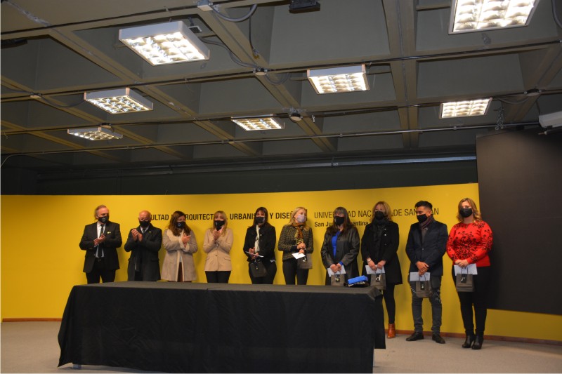 En una ceremonia muy sencilla y emotiva realizada en el salón de actos de la Facultad de Arquitectura, Urbanismo y Diseño de la Universidad Nacional de San Juan, el Decano Arq. Guillermo Velasco junto la vicedecana DG Natalia Sevilla con la presencia del Rector de la UNSJ, Ing. Tadeo Berenguer y la vicerrectora, Dra. Analía Ponce, fueron los responsables de entregar la resolución de designación a los secretario y jefes de los Departamentos.
