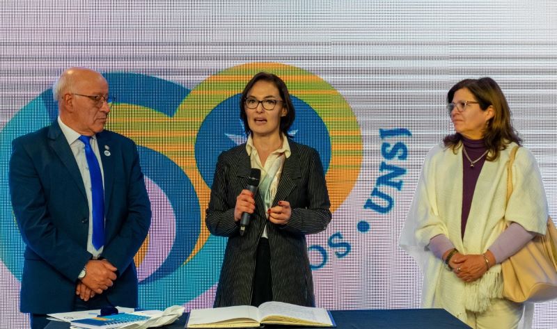 “Este es un momento de profunda emoción para mí porque empezamos este sueño con la querida Mónica, querida por todos y todas y, de alguna manera, siento su presencia en este acto acompañándome”, expresó Miranda, luego de ser leída por la Tec. Susana Roldán, directora de Prensa Institucional, la resolución de su puesta en funciones. En el acto estuvieron presentes el rector de la UNSJ, Ing. Tadeo Berenguer, y la vicerrectora Dra. Analía Ponce, junto a autoridades de Rectorado y de las Unidades de esta Universidad.