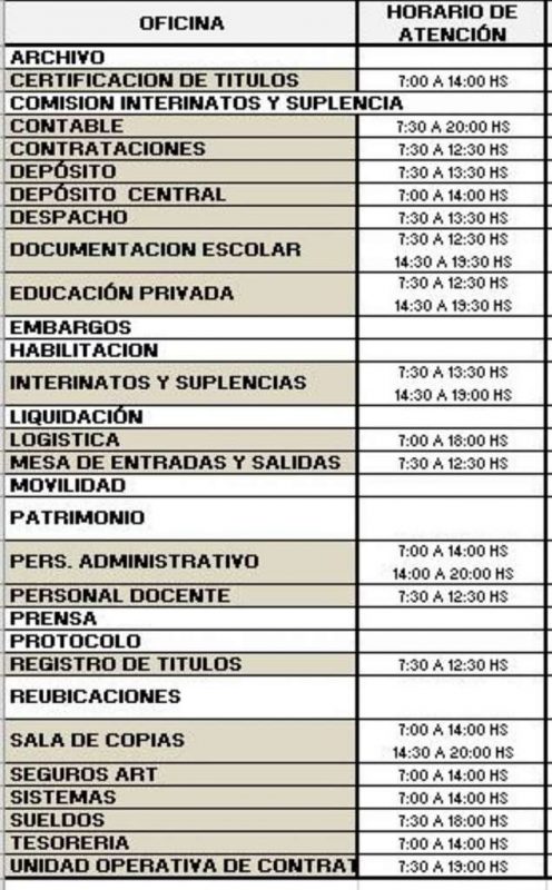 Algunas oficinas el personal realiza trabajo interno, sin atención al público. La modificación está vigente hasta el 22 de Julio inclusive, retomando el horario habitual el 25 de Julio.