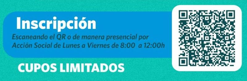 Los interesados pueden inscribirse escaneando el código QR del afiche o de manera presencial en las oficinas de Acción Social, de Lunes a Viernes, de 8 a 12 horas. Los cupos son limitados.