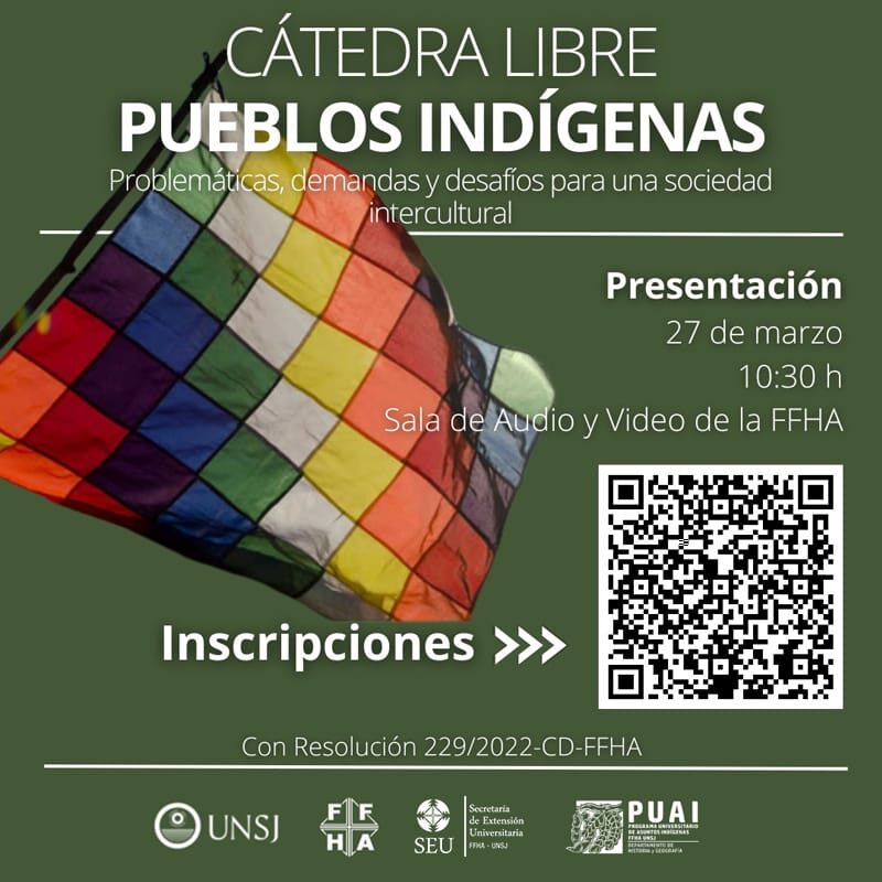 Inicia la Cátedra Libre “Pueblos Indígenas – Problemáticas, demandas y desafíos para una sociedad intercultural” el 10 de Abril, en la Sala de Video de la FFHA de la UNSJ.