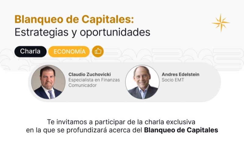 Zuchovicki y Edelstein abordarán tópicos como el nuevo contexto y política económica en Argentina, los conceptos claves del blanqueo de capitales y las diversas opciones de instrumentos de inversión. Los interesados podrán participar de la charla desde el canal de YouTube de Grupo Petersen: https://www.youtube.com/@gppetersen7/.