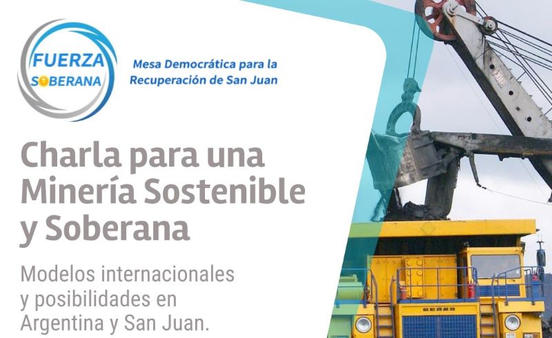 El Viernes, 08 de Julio, a las 19 hs.; en el Aula Magna de la Facultad de Filosofía, Humanidades y Artes de la Universidad Nacional de San Juan se desarrolla “Charla para una minería sostenible y Soberana. Modelos Internacionales y posibilidades en Argentina y San Juan”, que es una mesa de diálogo que se estableció entre varias Organizaciones Políticas que se denominan “Fuerza Soberana”.