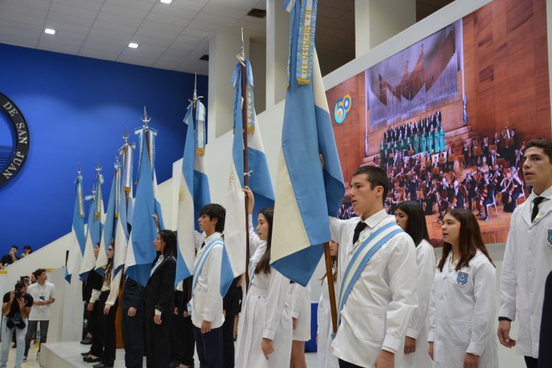 Luego se entonó el Himno Nacional Argentino ejecutado por la Orquesta Sinfónica y cantada por el Coro Universitario de la Universidad Nacional de San Juan.