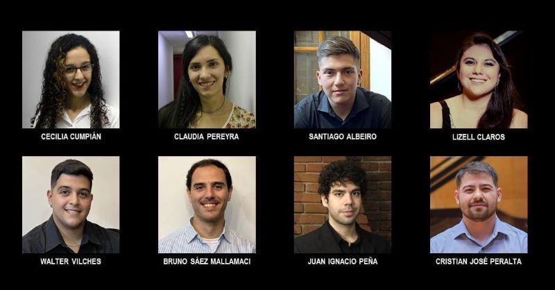 Los pianistas Lizell Claros, Claudia Pereyra, Cecilia Cumpián, Juan Ignacio Peña, Bruno Sáez Mallamaci, Cristian José Peralta, Walter Vilches y Santiago Albeiro, alumnos de las profesoras Ana Inés Aguirre y Beatriz Yacante, quienes ofrecen obras de R. Schumann, F. Chopin, C. Debussy, M. Ravel, E. Granados, A. Scriabin, S. Rachmaninov, L. Janáček y A. Tauriello.