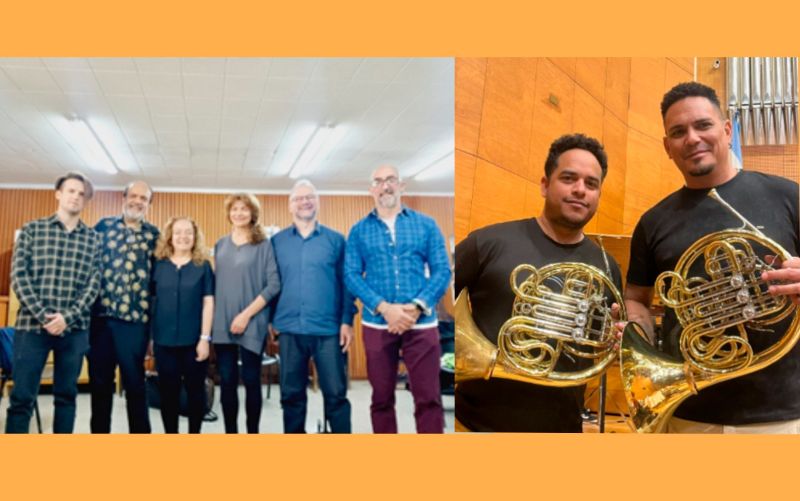 Integrantes del Sexteto de Cuerdas y de la formación de Cornos de la UNSJ.