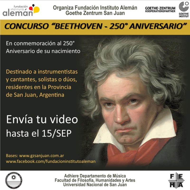 Concurso dedicado a la figura de Ludwig van Beethoven y a su legado musical, en el año del 250° aniversario de su nacimiento, organizado por la Fundación Instituto Alemán de San Juan / Goethe-Zentrum en cooperación con el Departamento de Música de la Facultad de Filosofía, Humanidades y Artes de la Universidad Nacional de San Juan.