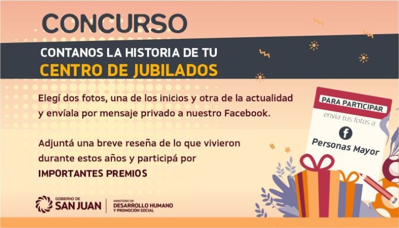 En este marco, el Ministerio de Desarrollo Humano y Promoción Social, a través de la Dirección de Políticas para Personas Mayores lanzó un concurso dirigido a todos los Centros de Jubilados de San Juan a través de Facebook denominado “Contanos la historia de tu Centro de Jubilados”.