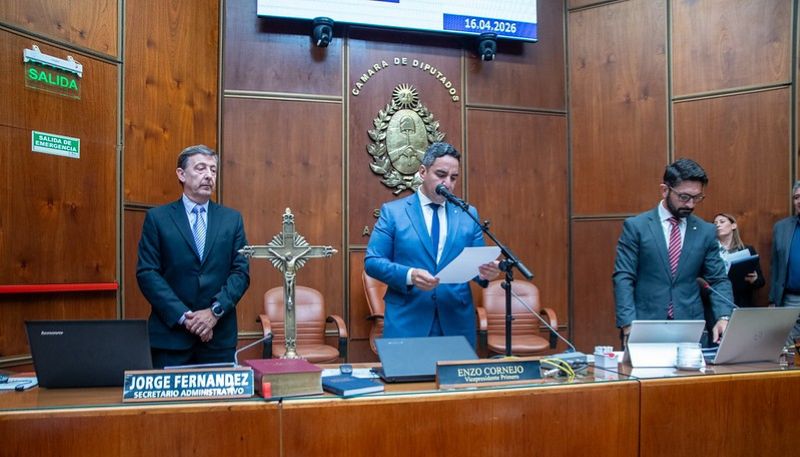 Acto seguido, el vicepresidente primero les tomó el juramento de forma a los integrantes de ambas salas. Luego, la vicepresidente segunda, diputada Marisa López procedió a tomarle juramento al legislador Enzo Cornejo como miembro de la sala Juzgadora.