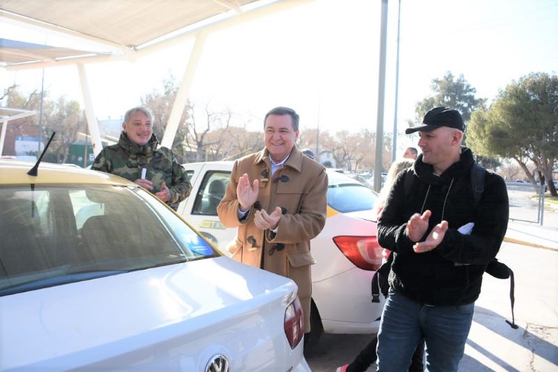 El Ministro de Gobierno de San Juan, Dr. Alberto Hensel, junto a trabajadores de taxi y remis, pusieron en marcha la campaña que recuerda en las unidades de transporte la Gesta de Malvinas.