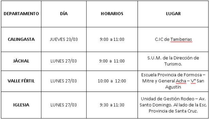 El Ministerio de Educación del Gobierno de San Juan informa que las personas que poseen contratos administrativos de Servicios de Colaboración, Porteros y Administrativos, residentes en departamentos alejados, deberán concurrir al establecimiento indicado para la presentación de facturas de Marzo 2023.
