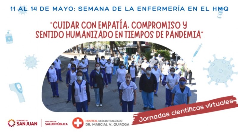 Del 11 al 14 de Mayo, siempre con inicio a las 11 horas, el Departamento de Enfermería del Hospital Dr. Marcial Quiroga realiza jornadas científicas virtuales desde el salón de actos del nosocomio, entrega de tarjetas identificatorias para fortalecer cuidado humanizado, homenajes, reconocimientos y menciones.