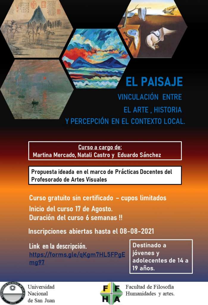 El Departamento de Artes Visuales de la Facultad de Filosofía, Humanidades y Artes de la Universidad Nacional de San Juan ofrece una serie de cursos gratuitos en el marco de una propuesta ideada en el marco de las Prácticas Docentes del Profesorado de Artes Visuales.
