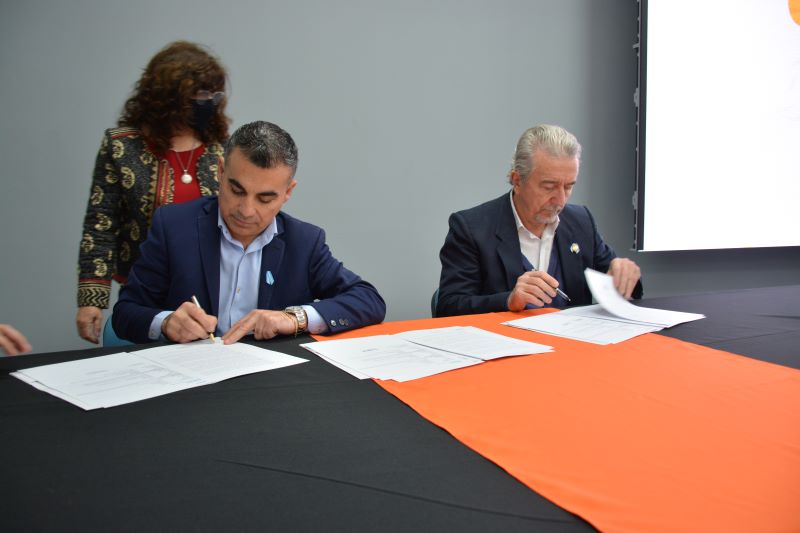Los responsables de la firma fueron el Intendente de la Municipalidad de Chimbas, Fabián Gramajo y el Decano de la FCEFN de la UNSJ, Ing. Rodolfo Bloch.