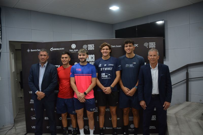 La presentación se realizó este lunes en la Sala Dante Pantuso, con la pareja Nº2 del Circuito, los argentinos Franco Dal Bianco y Maxi Arce. La presencia del secretario de Deporte, Pablo Tabachnik, del director de Comunicación del Circuito A1 Pádel, Oscar Solé y del presidente de la Agencia San Juan Deporte, Pablo Aubone.