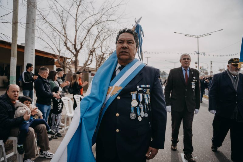- 12 hs.; comienza el desfile cívico-militar del que participan 60 abanderados de escuelas del Departamento Capital, así como abanderados de formaciones de escuelas para adultos. También participan excombatientes de Malvinas, el Ejército, la Gendarmería, la Policía Federal, la Policía de San Juan, el Servicio Penitenciario y la Federación Gaucha. Todo el desfile será a pie, sin movilidades. El recorrido del desfile es Av. José Ignacio de la Roza, desde Av. Leandro N. Alem, Mendoza, Mitre, Gral. Acha y culminando en Tucumán.