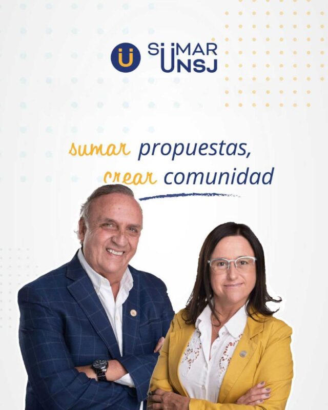 En esta oportunidad, el Espacio Sumar UNSJ tiene los candidatos a Rector Arq. Guillermo Velasco y a Vicerrectora Dra. Mónica Ruiz 2025 – 2029 una opción que apunta sumar propuestas , crear comunidad .