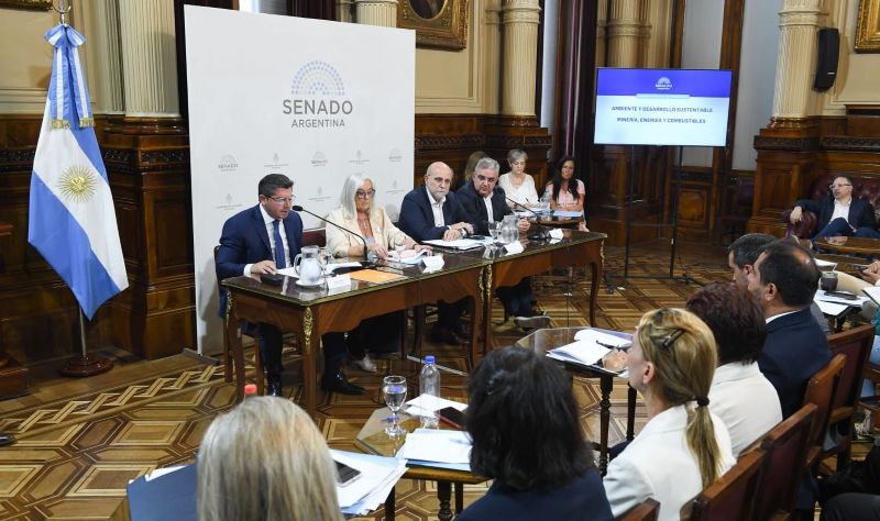 En el salón Arturo Illia del Palacio Legislativo, en Buenos Aires, en el marco de la reunión plenaria de las comisiones de Ambiente y Desarrollo Sustentable y de Minería, Energía y Combustibles del Senado de la Nación donde se discute esta importante temática.