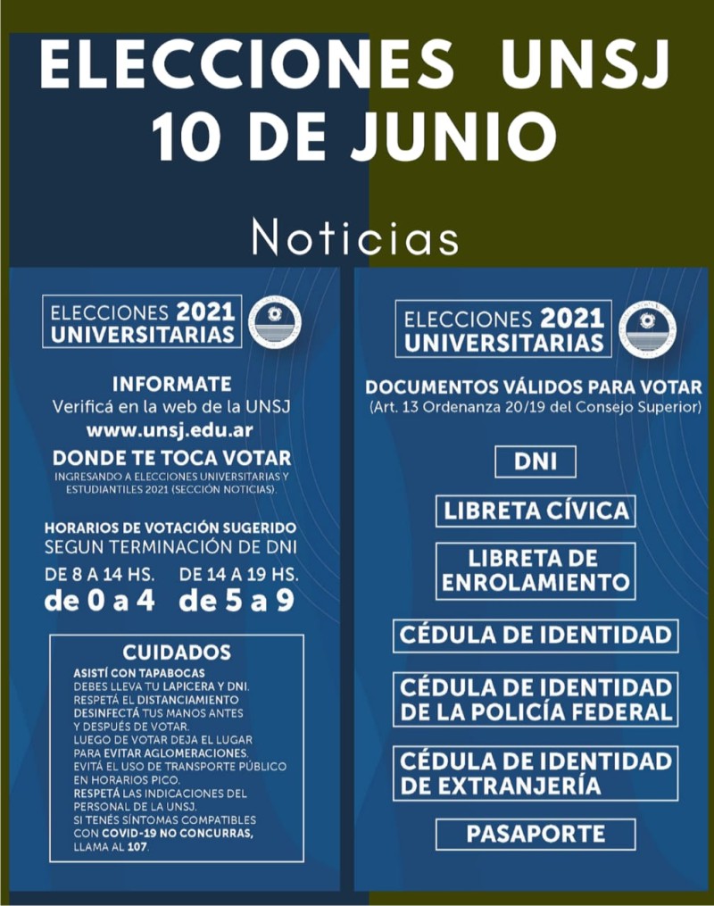El Jueves, 10 de Junio se desarrollan las elecciones 2021 en la UNSJ