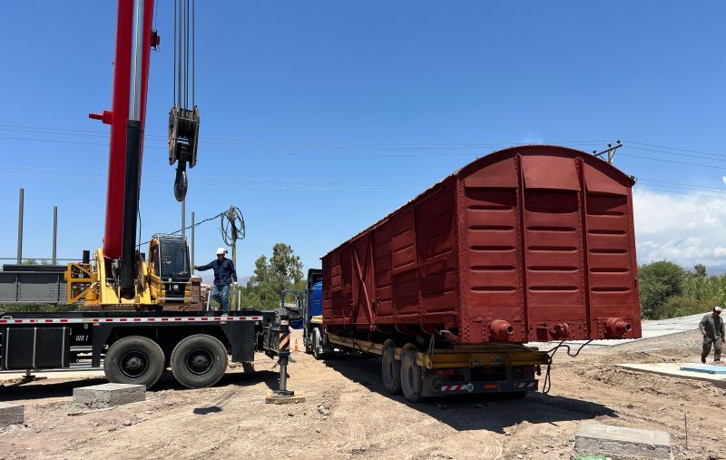 El Portal del Ciclismo en Rivadavia avanza con la colocación de un vagón histórico del Ferrocarril en San Juan