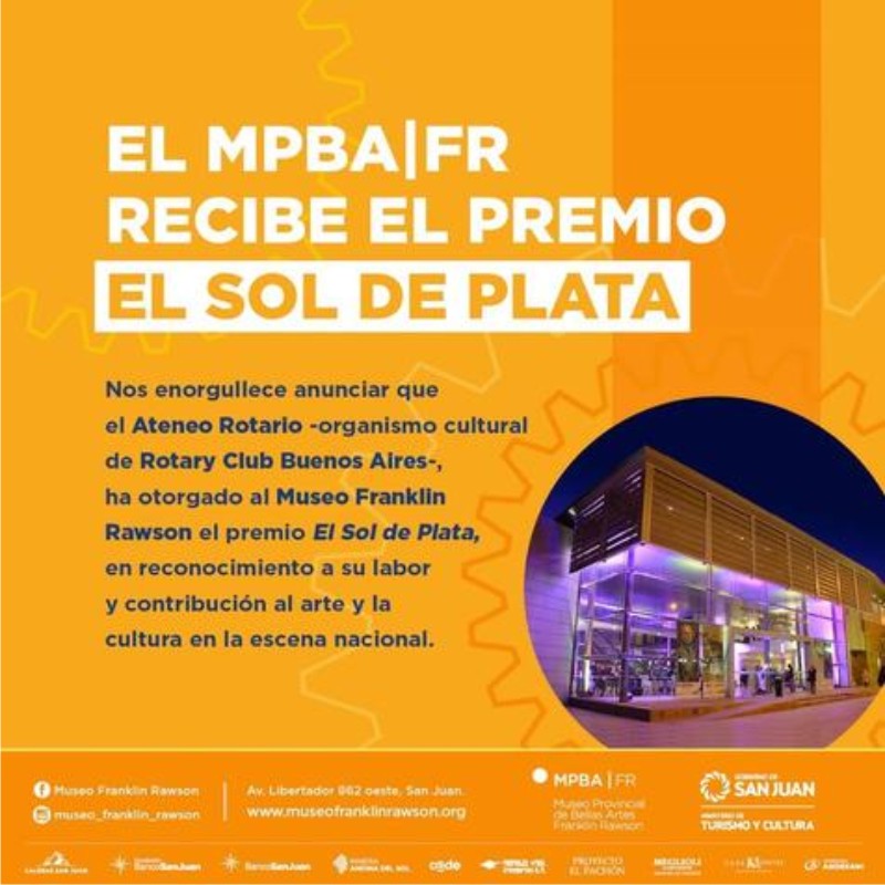 El Miércoles, 23 de Junio, a las 18 hs., el Museo Provincial de Bellas Artes Franklin Rawson, recibe el premio “Sol de Plata”.