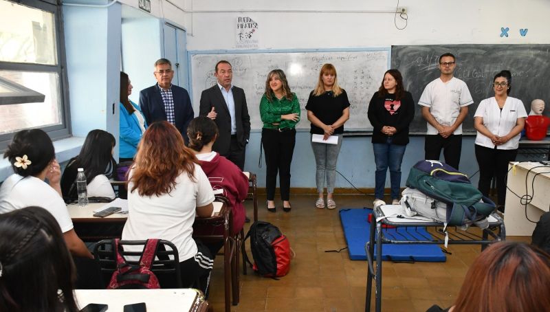 La actividad se inició en la Escuela Presidente Hipólito Yrigoyen, Departamento Capital acompañando a los profesionales que dictan la formación y a los alumnos y docentes de quinto y sexto año de la institución.