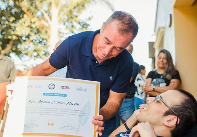 Eric Villalón es un vallista de 30 años, el mayor de 3 hermanos, un apasionado por las letras y conocedor de diversas herramientas informáticas. En su paso por el Concurso San Juan Escribe. Premio Jorge Leonidas Escudero. Edición 2024 quedó preseleccionado en Literatura Infantil con la obra “Un acuario, cinco peces”. La discapacidad de Eric, que es parapléjico, no le impidió grabar aquellas ideas que guardaba en su mente. Fue la ayuda de sus profesoras lo que permitió la transcripción y posteriormente la presentación en el citado Concurso.