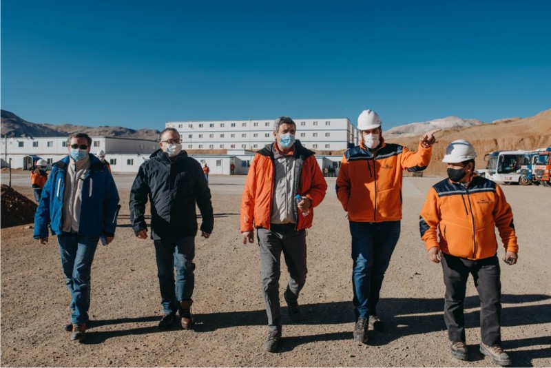 Tras recorrer el campamento, la comitiva se dirigió a la planta de proceso, donde se interiorizó sobre los trabajos en refinería. Seguidamente se trasladó al valle de la mina, donde observó de primera mano la ampliación de la mina de fase 5 a 6. El recorrido culminó en la mina, donde se pusieron al tanto de los trabajos en el Filo Federico.