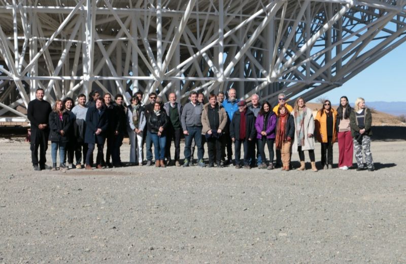 Tras el diálogo, los miembros del CONICET, la SECITI y de la Facultad de Ciencias Exactas, Físicas y Naturales de la UNSJ pudieron observar el ensamble del radiotelescopio y recorrer las instalaciones.