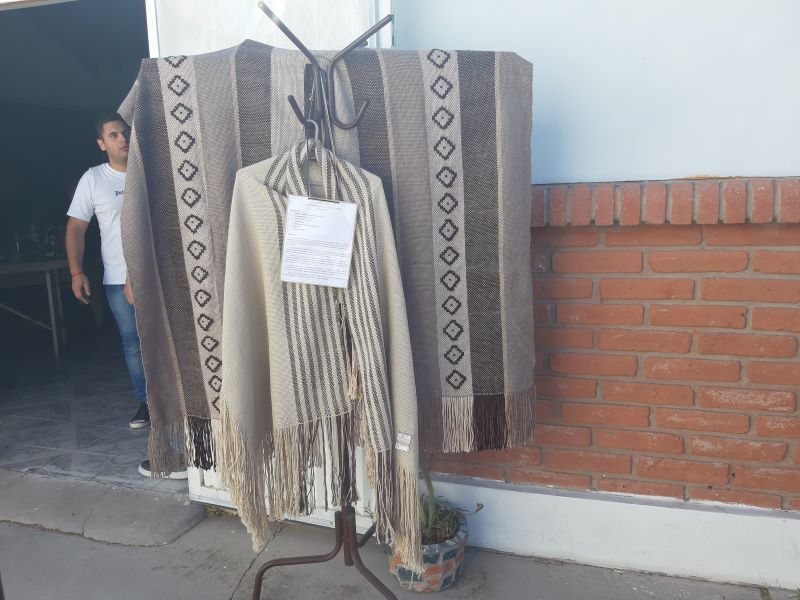 Es importante destacar que a la entrada del salón su presencia imponente con la presencia de la Ruana sanjuanina ganadora 2023. Los presentes se acercaron a observar tanta belleza artesanal.