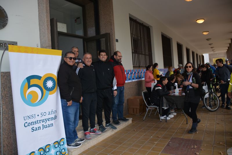 La Comisión de la Universidad Nacional de San Juan organizó una bicicleteada participativa para festejar los 50° aniversario de la Institución Académica. Un evento de gran nivel porque desde la organización hasta el la largada en el Rectorado de la UNSJ, recorrido por la ciudad de San Juan y la llegada al Complejo Deportivo «El Palomar» de la UNSJ, fueron acompañados por la Policía de San Juan y los guías designados cumplieron con responsabilidad que les tocó para que los participantes pudieran compartir la travesía y desafío en una tarde muy fría que no fue motivo para desertar.