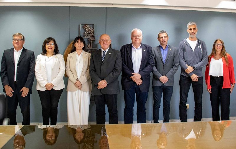 El rector de la UNSJ, Ing. Tadeo Berenguer junto a la decana de la Facultad de Ingeniería de la UNSJ, Dra. Andrea Díaz, mantuvieron una reunión con Clínica El Castaño, representada por su director Dr. Walter Stoermann, con el objetivo de suscribir un acta complementaria.