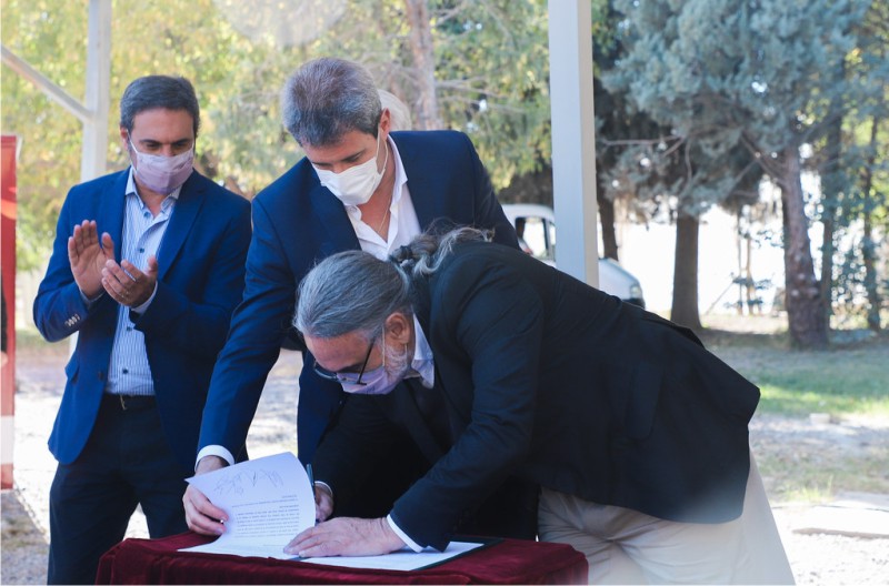 Durante el acto se llevó a cabo la firma de dos convenios. El primero entre la Provincia y el Instituto Nacional de Vitivinicultura para potenciar la Ruta del Vino y el desarrollo y promoción del sistema de designación de origen de los vinos y de las bebidas espirituosas de naturaleza vínica como factor de calidad, para lograr de esta forma aportar al desarrollo turístico y económico local y nacional.