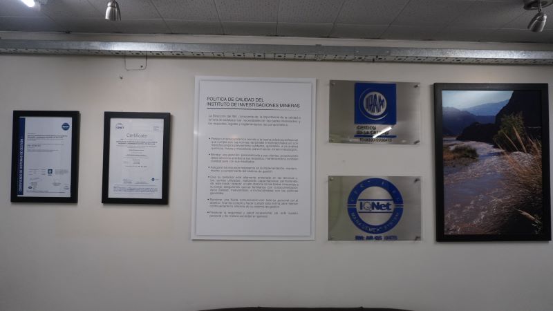 Cabe recordar que el Instituto de Investigaciones Mineras obtuvo la recertificación de que posee un Sistema de Gestión de la Calidad que cumple con los requisitos de la norma: IRAM – ISO 9001:2015 en enero de 2024, cuyo alcance es: “Análisis, ensayos y emisión de informes en muestras de roca. Capacitaciones en procesos mineros-metalúrgicos”. La certificación expedida a comienzo de año será válida hasta diciembre del 2026.