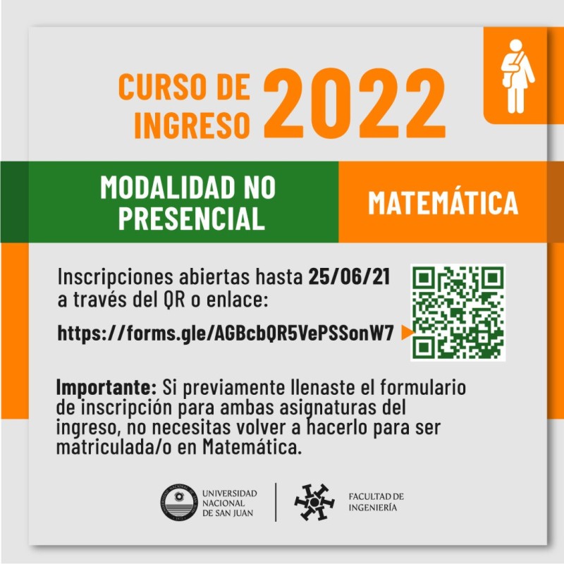 Se encuentran abiertas las inscripciones al Curso de Apoyo de Matemática para Ingreso a la Facultad de Ingeniería 2022 de la UNSJ, Modalidad No Presencial.