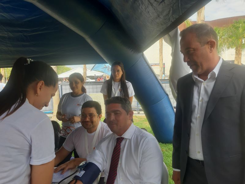 Los integrantes sugirieron que querían que el Gobernador, Dr. Marcelo Orrego, los visitara para hacerle controles. A su llegada al stand saludó a los presentes y lo invitaron a sentarse para realizarle el control de la presión arteria. Así fue. Les dio un momento de felicidad al equipo de salud que no podían creer que hayan participado del control al gobernador. Un gesto muy loable y de felicitar.