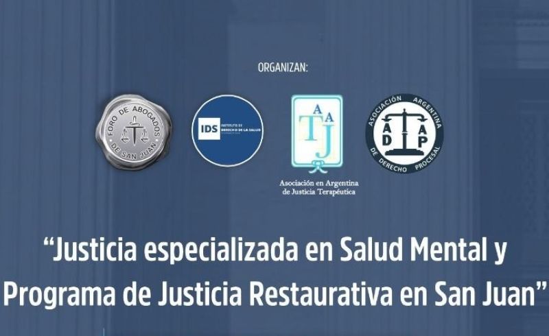 El Lunes, 30 de Marzo de 2026, de 17:30 a 20:30 hs.; se desarrolla la Jornada «Tribunales especializados de Salud Mental y Programa de Justicia Restaurativa» en San Juan.