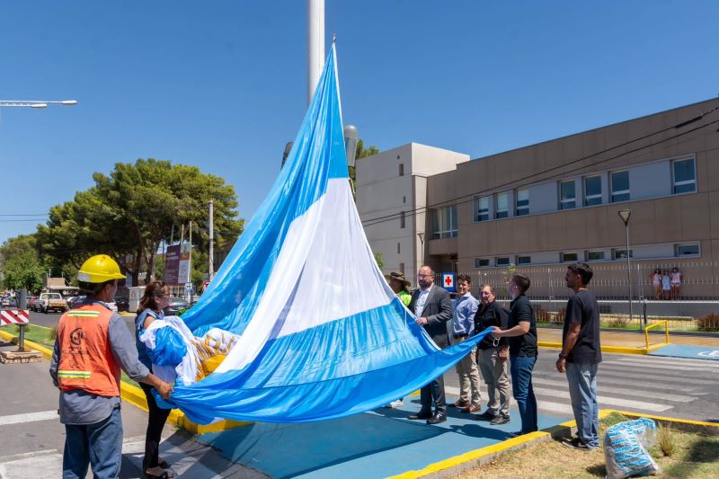 La Municipalidad de la Ciudad de Rivadavia realizó el recambio de la Bandera Argentina que se encuentra cerca de la rotonda de Libertador Gral. San Martín y Rastreador Calívar, Departamento Rivadavia, Provincia de San Juan.