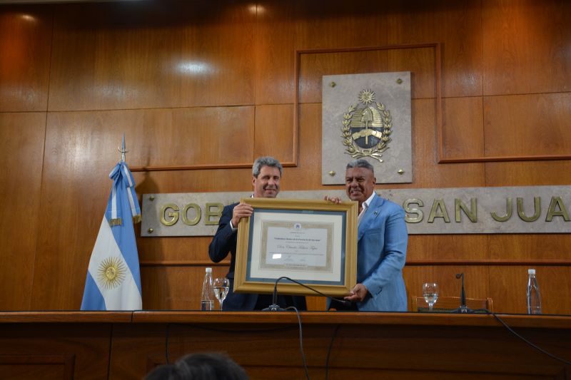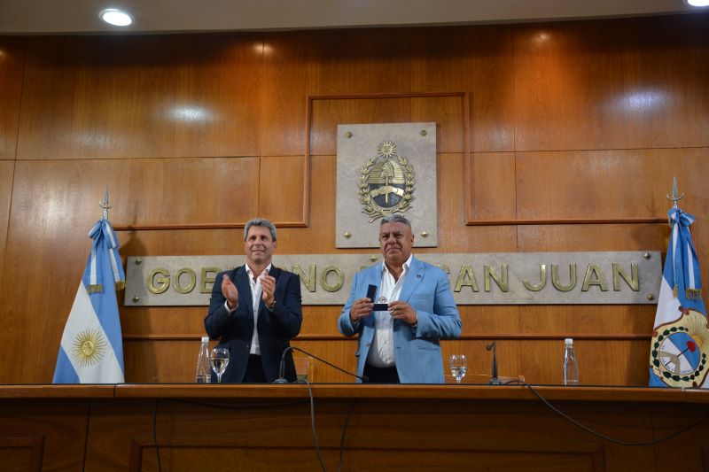 Posteriormente, se le entregó a Claudio Tapia la Declaración de Ciudadano Ilustre y la medalla que tiene acuñada el rostro de Domingo Faustino Sarmiento.