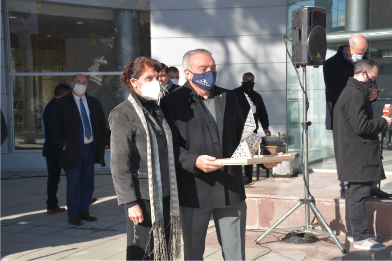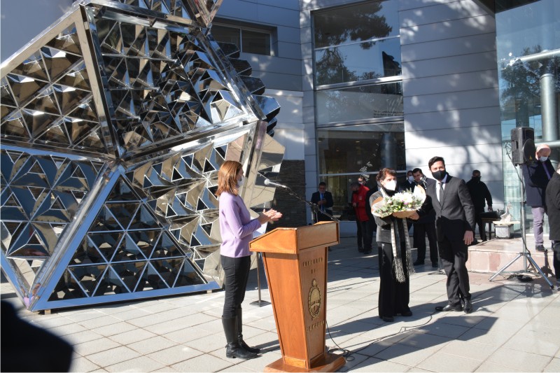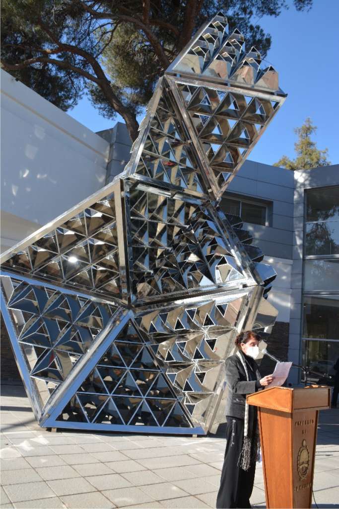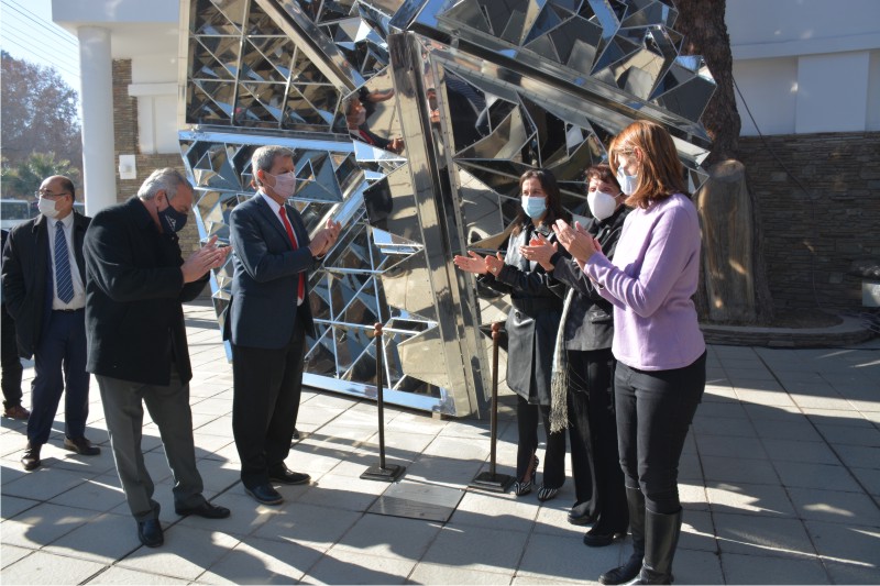 El vicegobernador en ejercicio del Poder Ejecutivo de la provincia, CPN Roberto Gattoni, presidió el acto de inauguración de la escultura «Caleidoscopio», ejecutada por la artista Beatriz García Huertas, en la vereda del Museo Provincial de Bellas Artes Franklin Rawson.