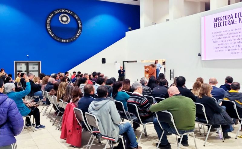 Con motivo de las elecciones del 11 de junio en las que Universidad Nacional de San Juan atravesará otro proceso democrático donde se elegirán autoridades generales es decir rector/a, vicerrector/a, consejeros/as superiores y a nivel de unidades académicas decanos/as, vicedecanos/as, director/a y vicedirector/a y consejeros/as directivos/as, el pasado 9 de junio la Junta Electoral dictó una capacitación para autoridades de mesa, que comenzó a las 18 horas y tuvo una duración de alrededor de dos horas.